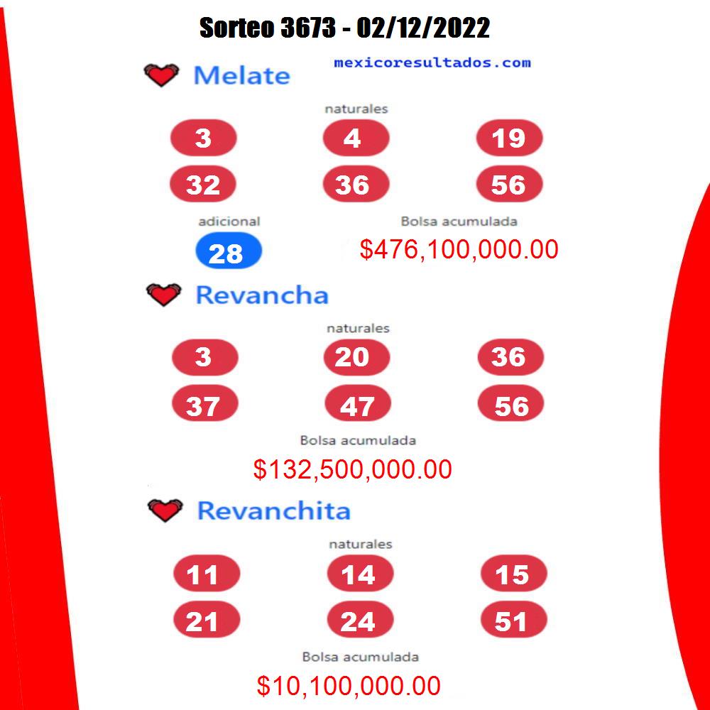 Melate 3673 Resultados del Sorteo