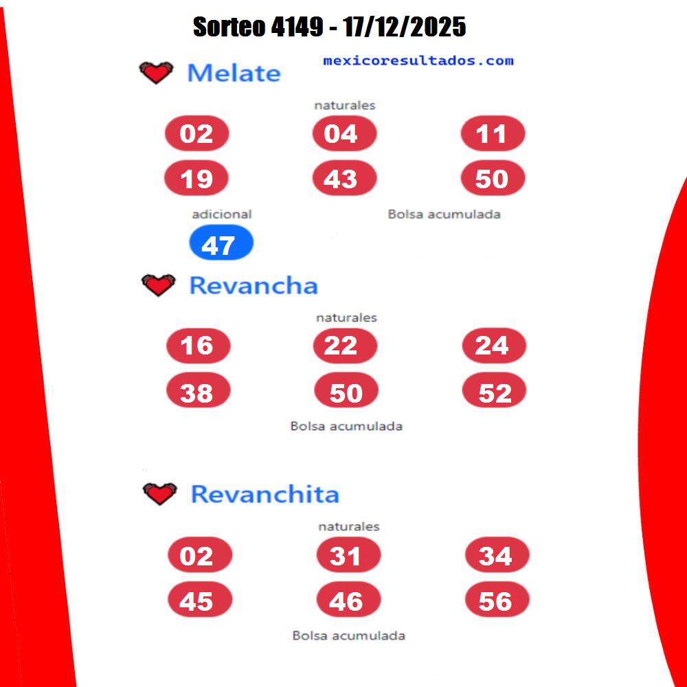 📸 Imágen con los resultados del melate para compartir en redes sociales. Sorteo Melate 4149