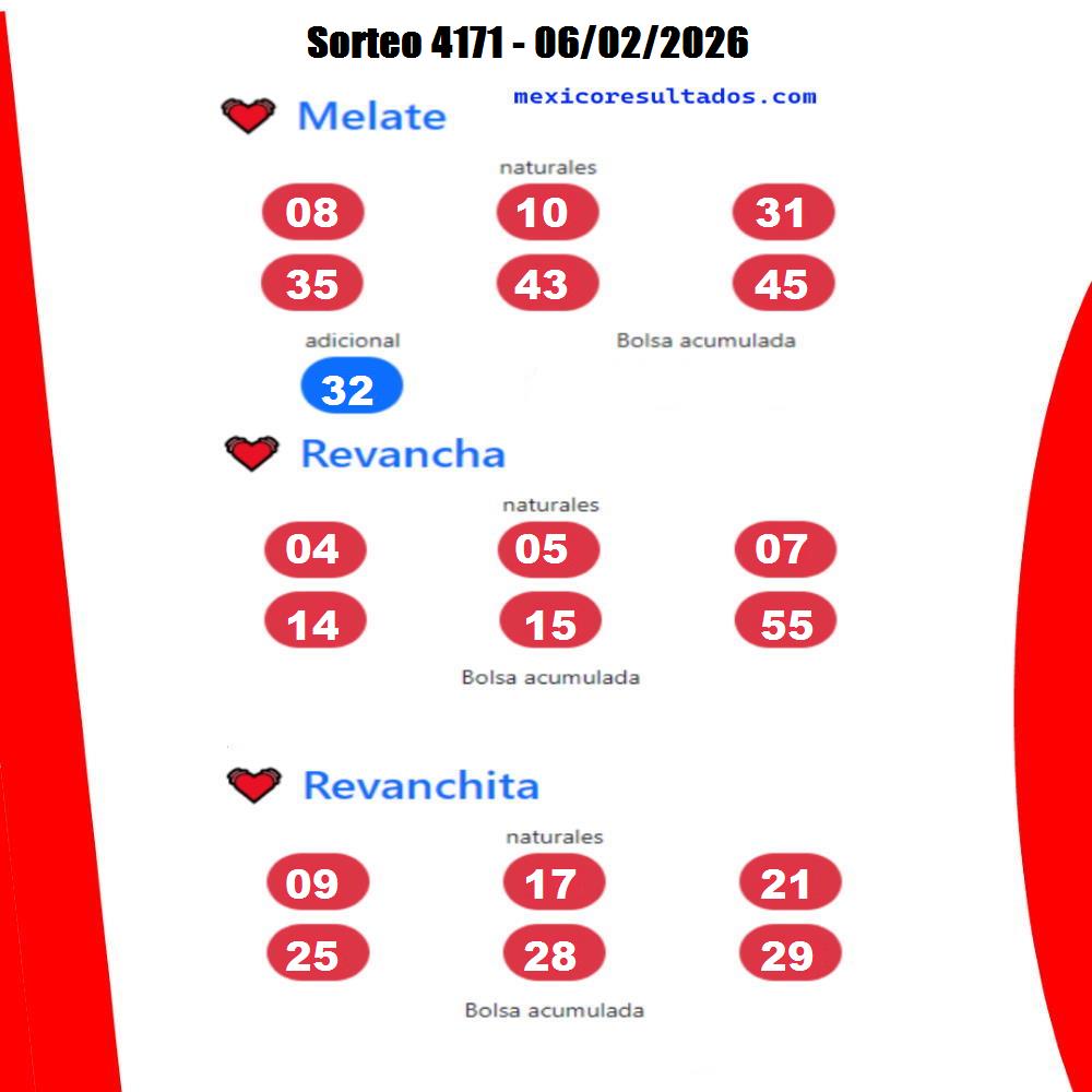 📸 Imágen con los resultados del melate para compartir en redes sociales. Sorteo Melate 4171