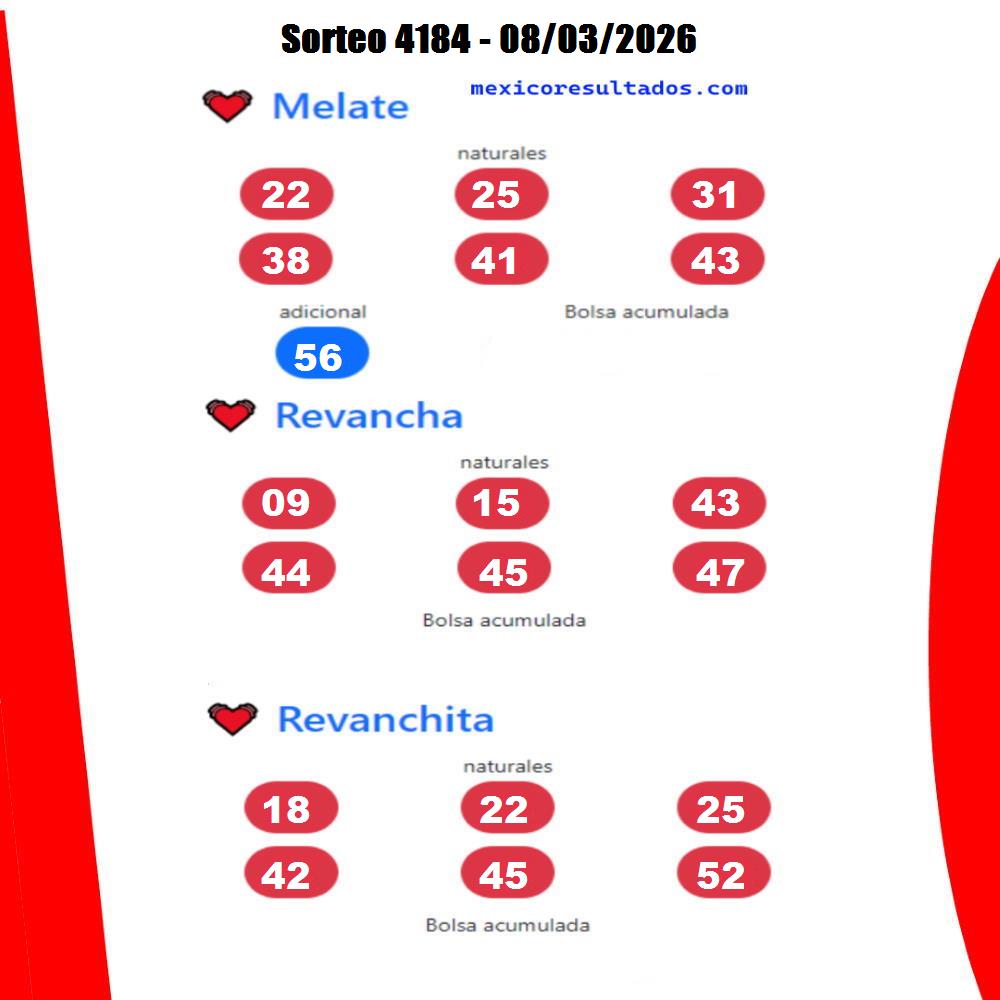 📸 Imágen con los resultados del melate para compartir en redes sociales. Sorteo Melate 4184